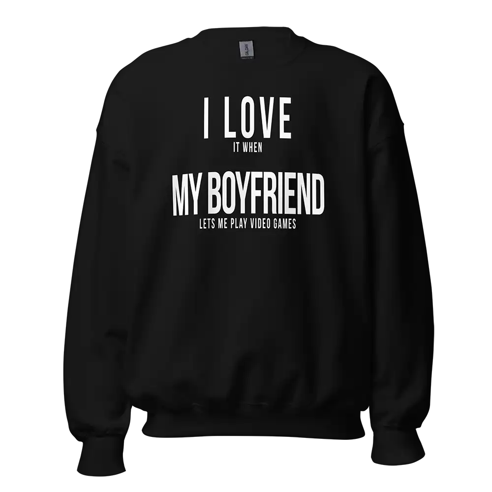 The I Love It When My Boyfriend Lets Me Play Video Games Sweatshirt is designed with a classic unisex fit that makes it comfortable for many different gamers.