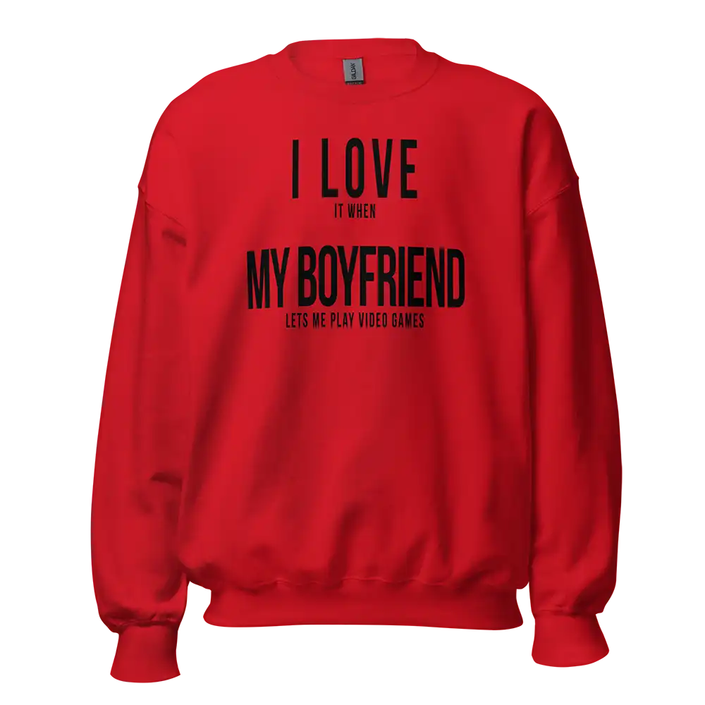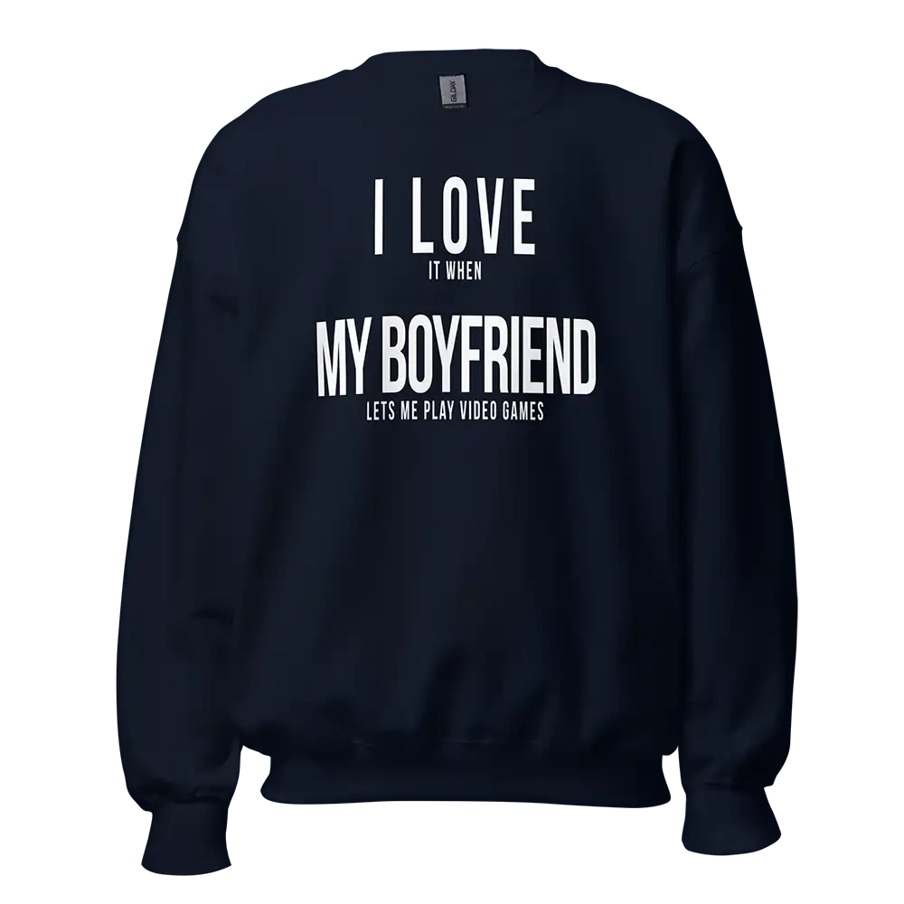 The I Love It When My Boyfriend Lets Me Play Video Games Sweatshirt combines humor, gaming culture, and relationship fun into one comfortable design. Its playful message resonates with gamer couples who enjoy sharing gaming time together.