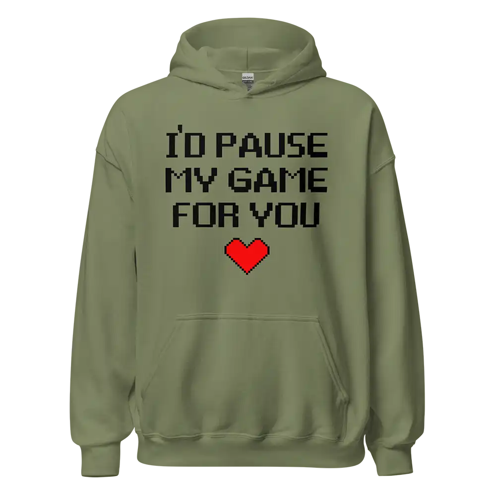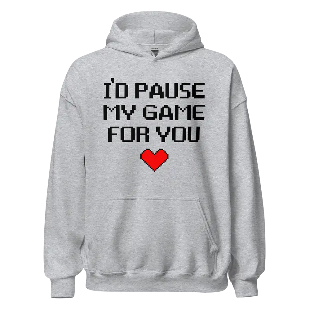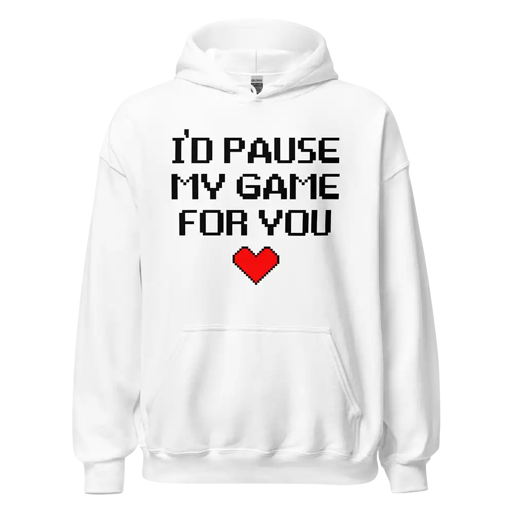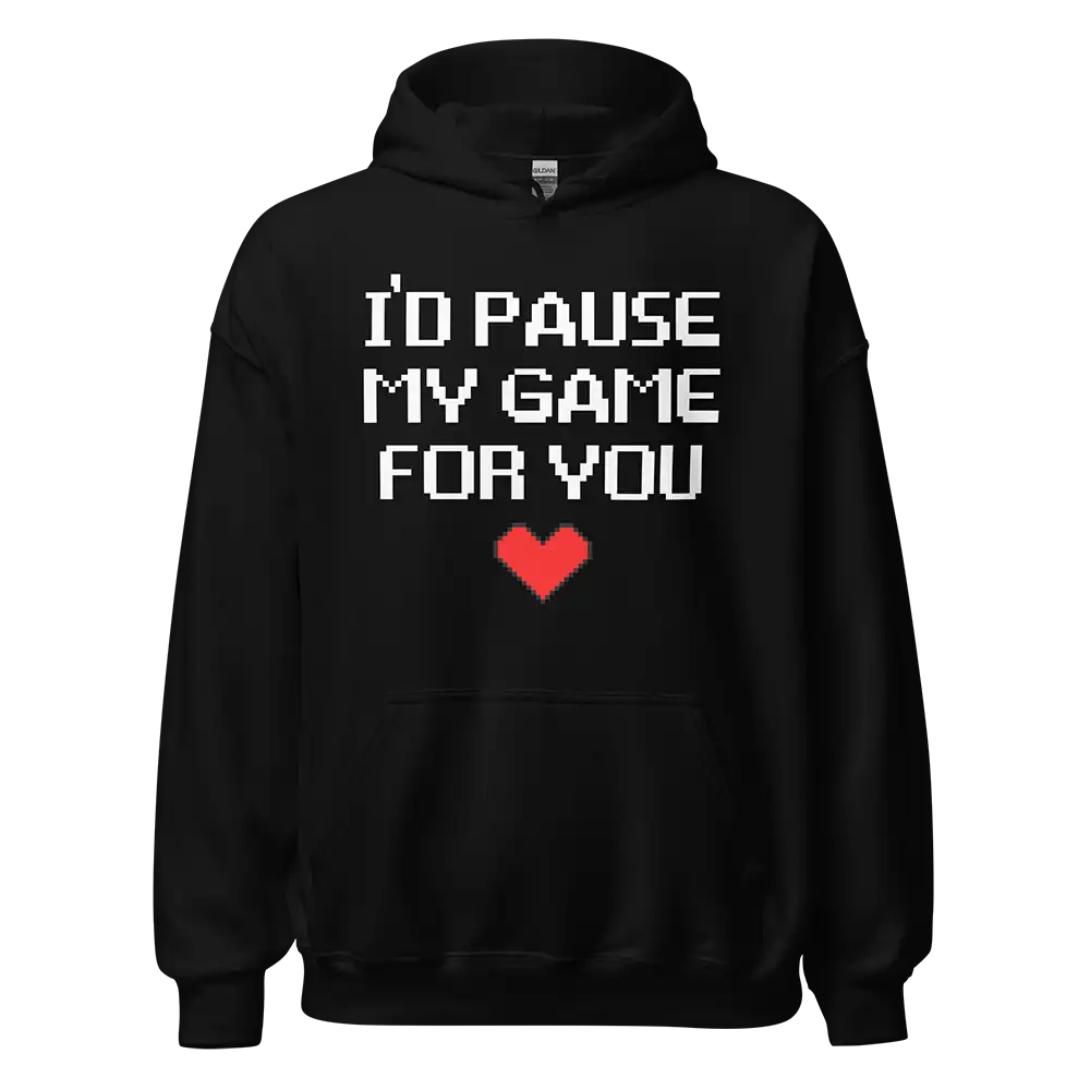 The I’d Pause My Game For You Hoodie celebrates that connection with a playful message that many gamer couples will instantly appreciate.