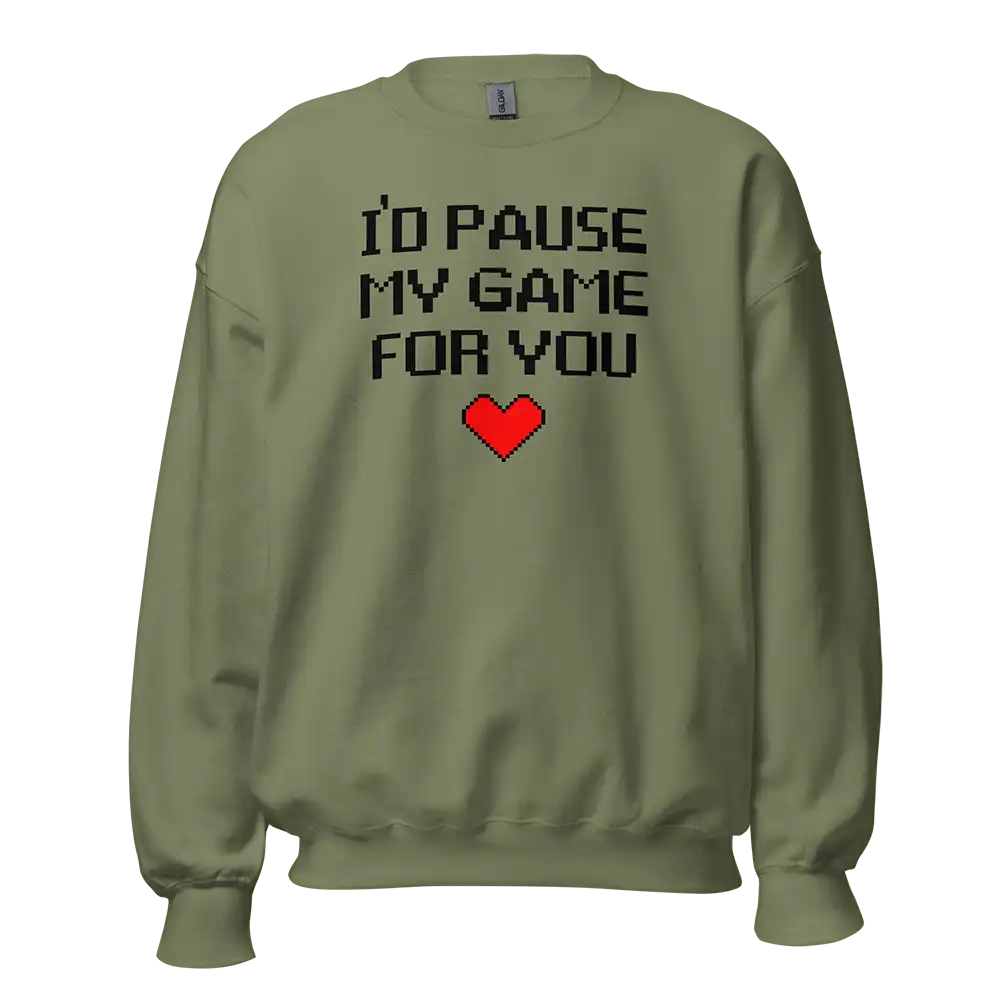 The I’d Pause My Game For You Sweatshirt features a classic unisex design, making it comfortable for many different gamers.