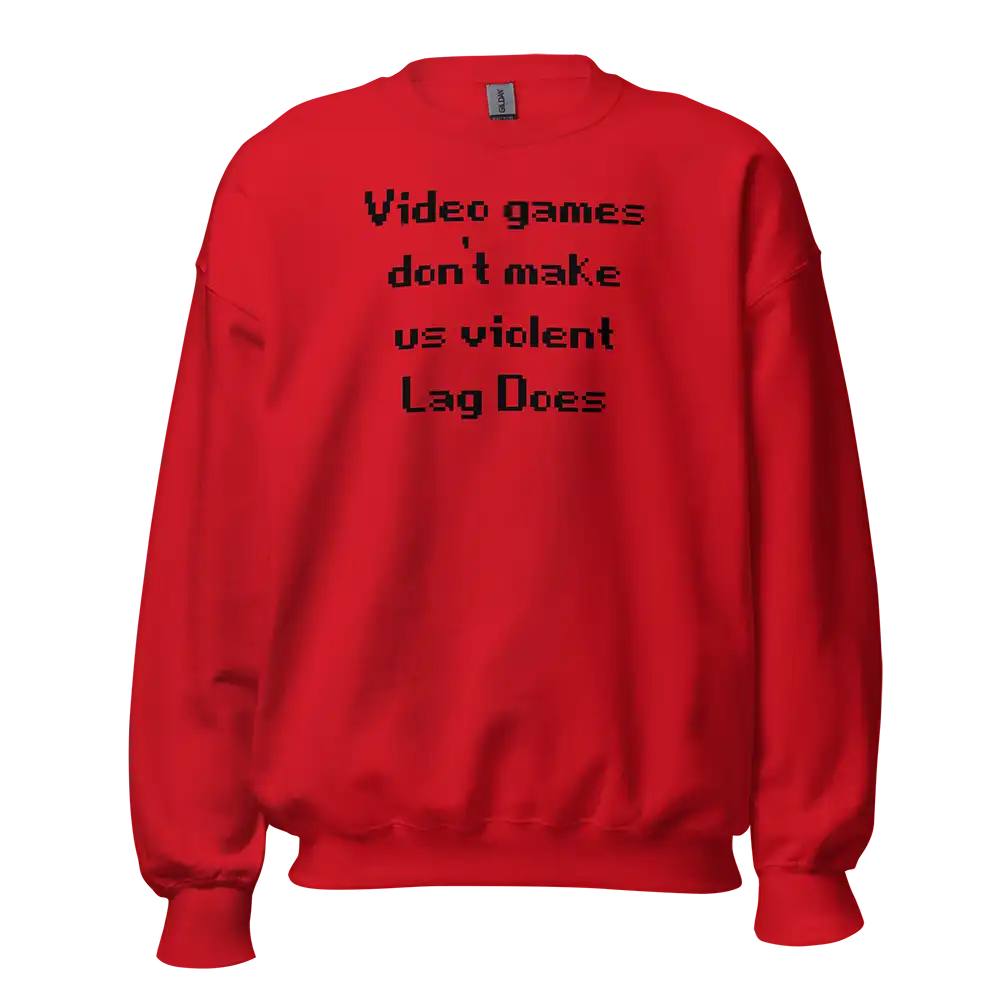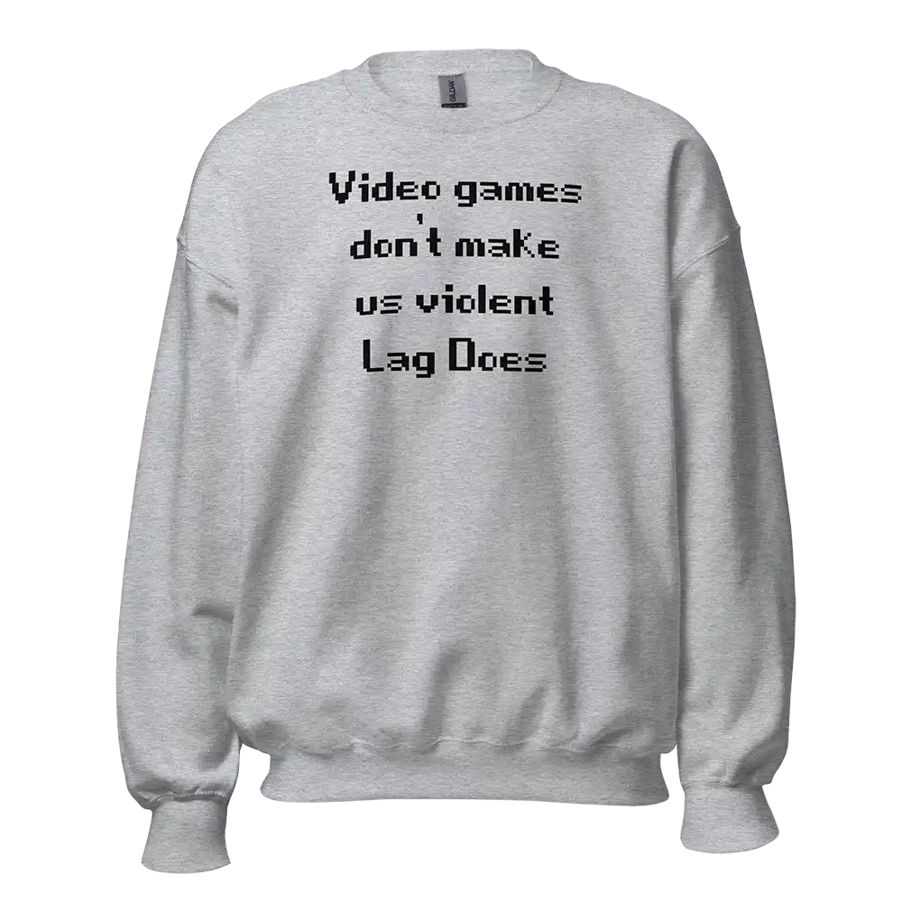 Whether you’re buying it for yourself or gifting it to a fellow gamer, the Video Games Don’t Make Us Violent Lag Does Sweatshirt is a fun and comfortable way to celebrate gaming humor and gamer culture. 🎮