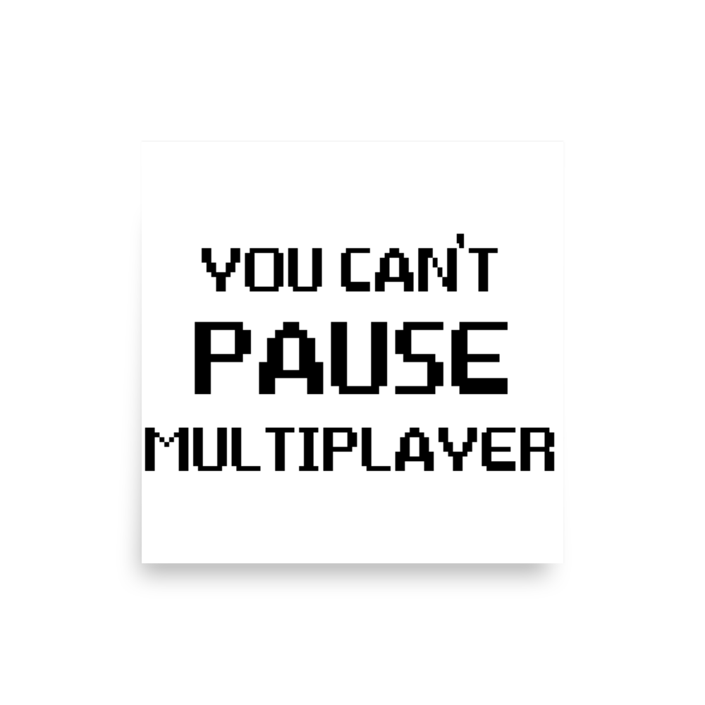 This you can’t pause multiplayer poster is instantly recognizable to online gamers. It works perfectly as: