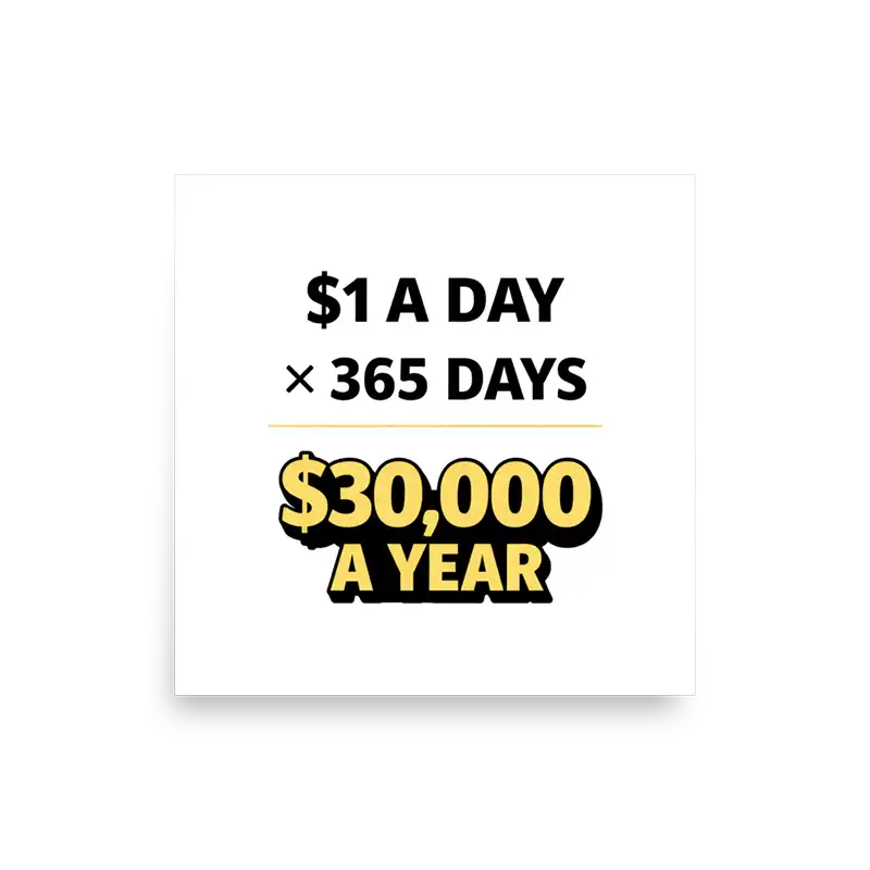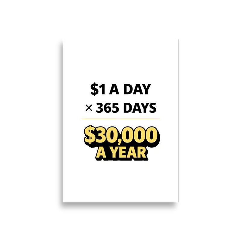 The humor behind the $1 a day 30000 a year poster is simple, but it hits on multiple levels.
