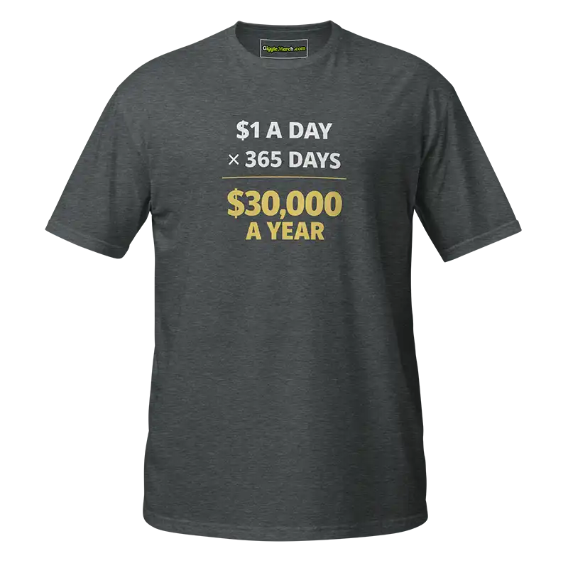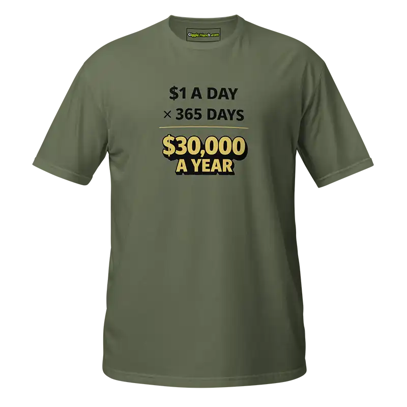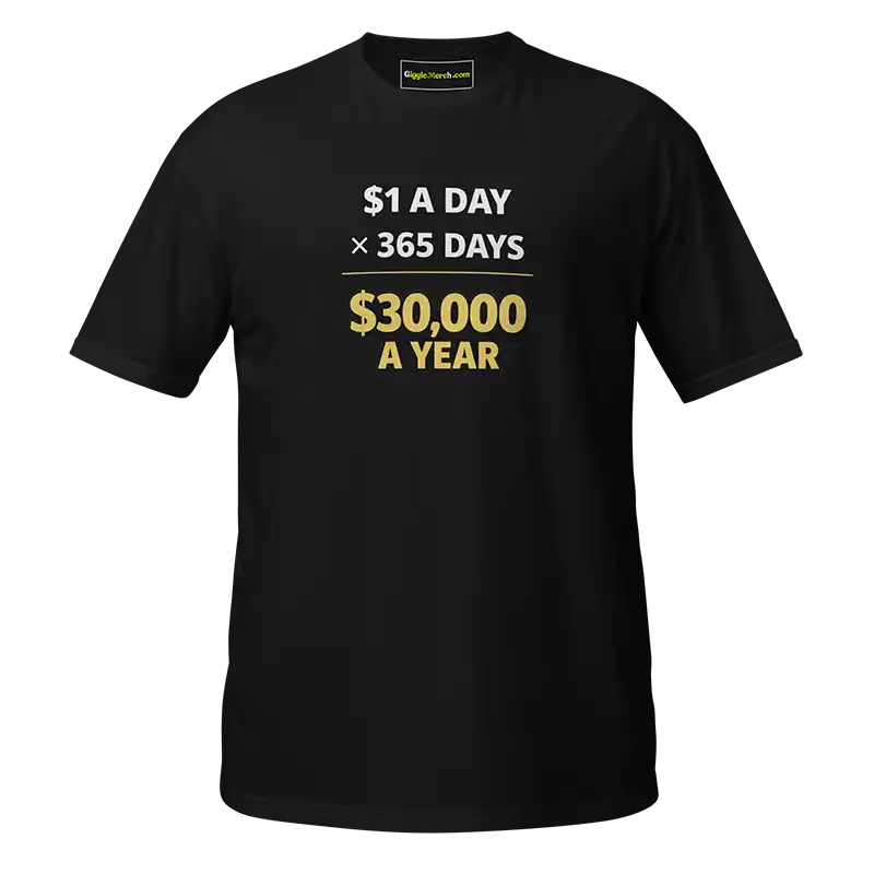 The “1 Dollar a Day 30000 a Year” T-shirt captures a viral moment that perfectly blends humor, irony, and internet culture.