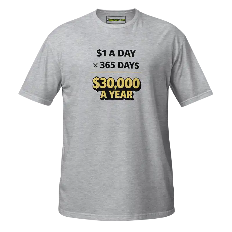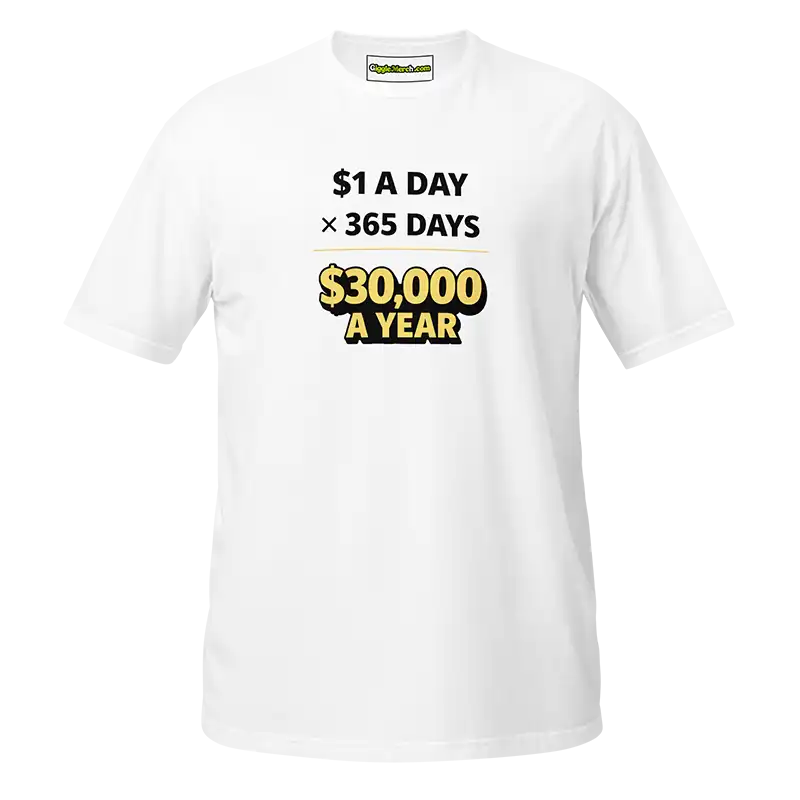 This T-shirt is inspired by a viral clip featuring Caroline Baniewicz, where she jokingly claimed that saving just $1 a day somehow adds up to $30,000 a year. Obviously, the math doesn’t check out—not even close. In reality, saving $1 a day for a year gives you $365… not thirty thousand.