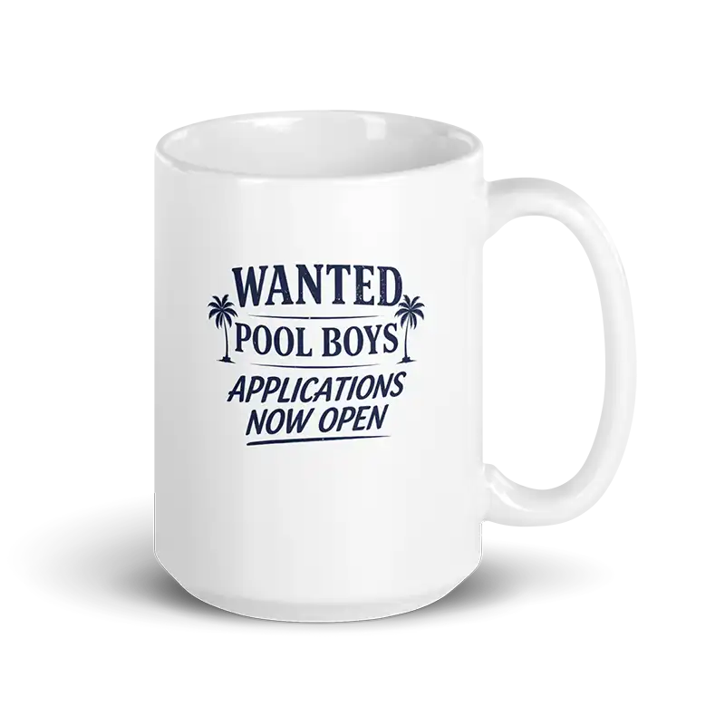 Simple wording, strong implication, and a bit of absurdity — that combination doesn’t fade quickly. And with durable materials and a clean design, this wanted pool boys applications now open funny mug is made to stick around.